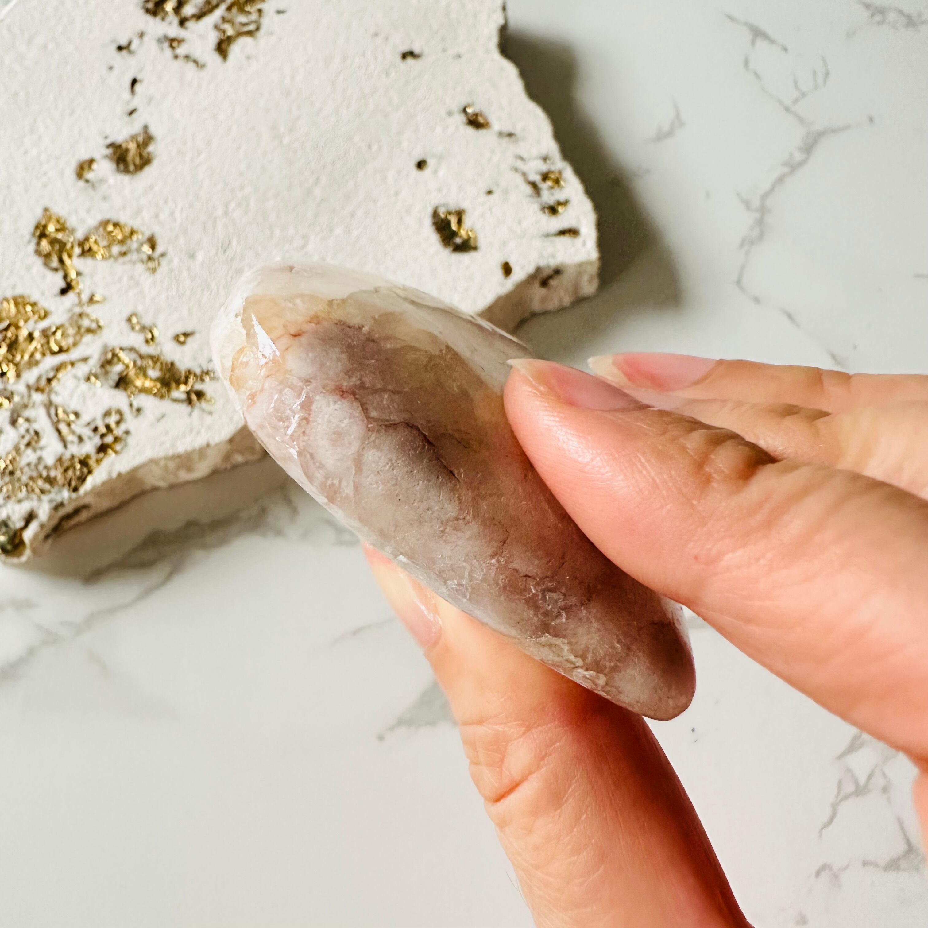フラワーアゲートとピンクアメジストが共生したハート型ストーンです。