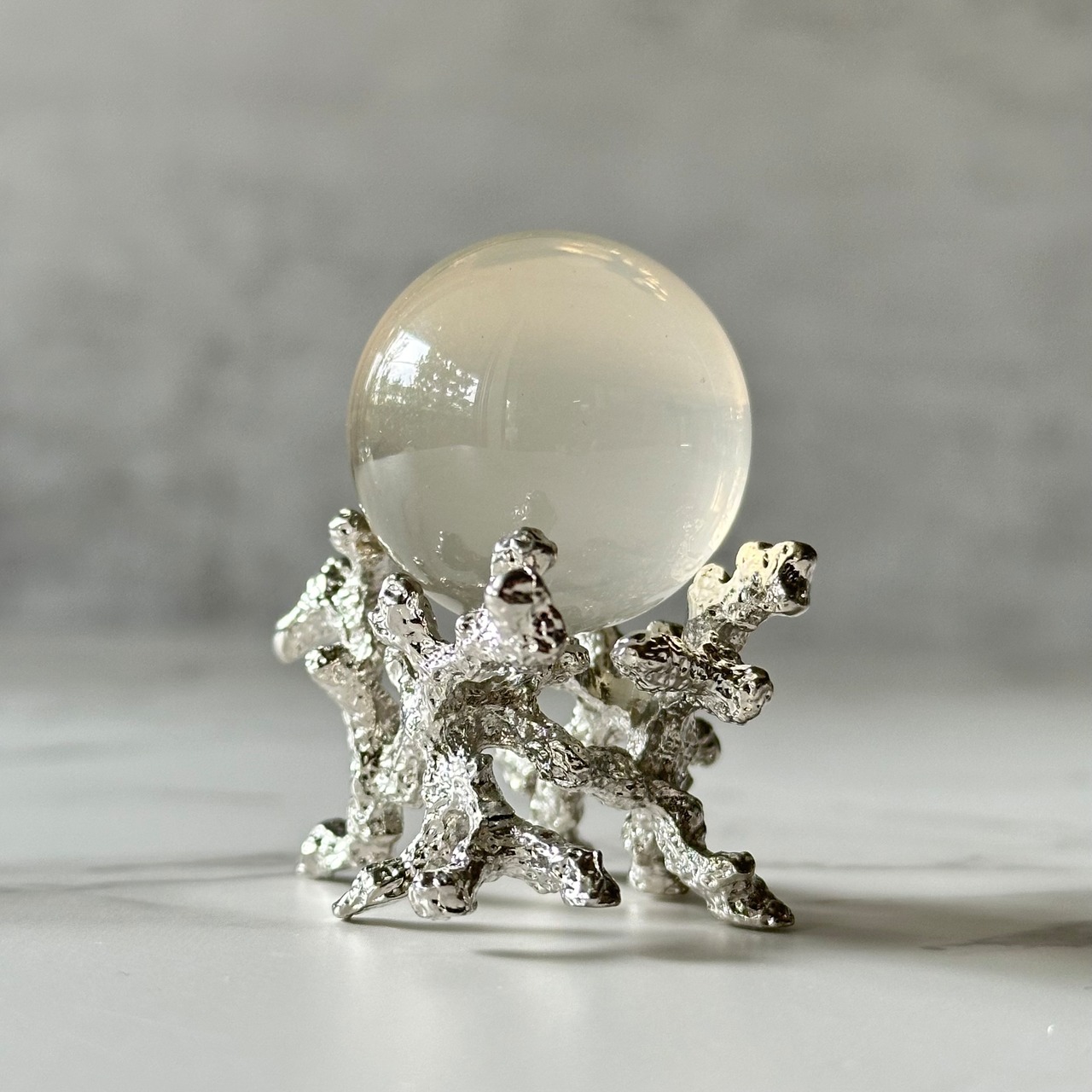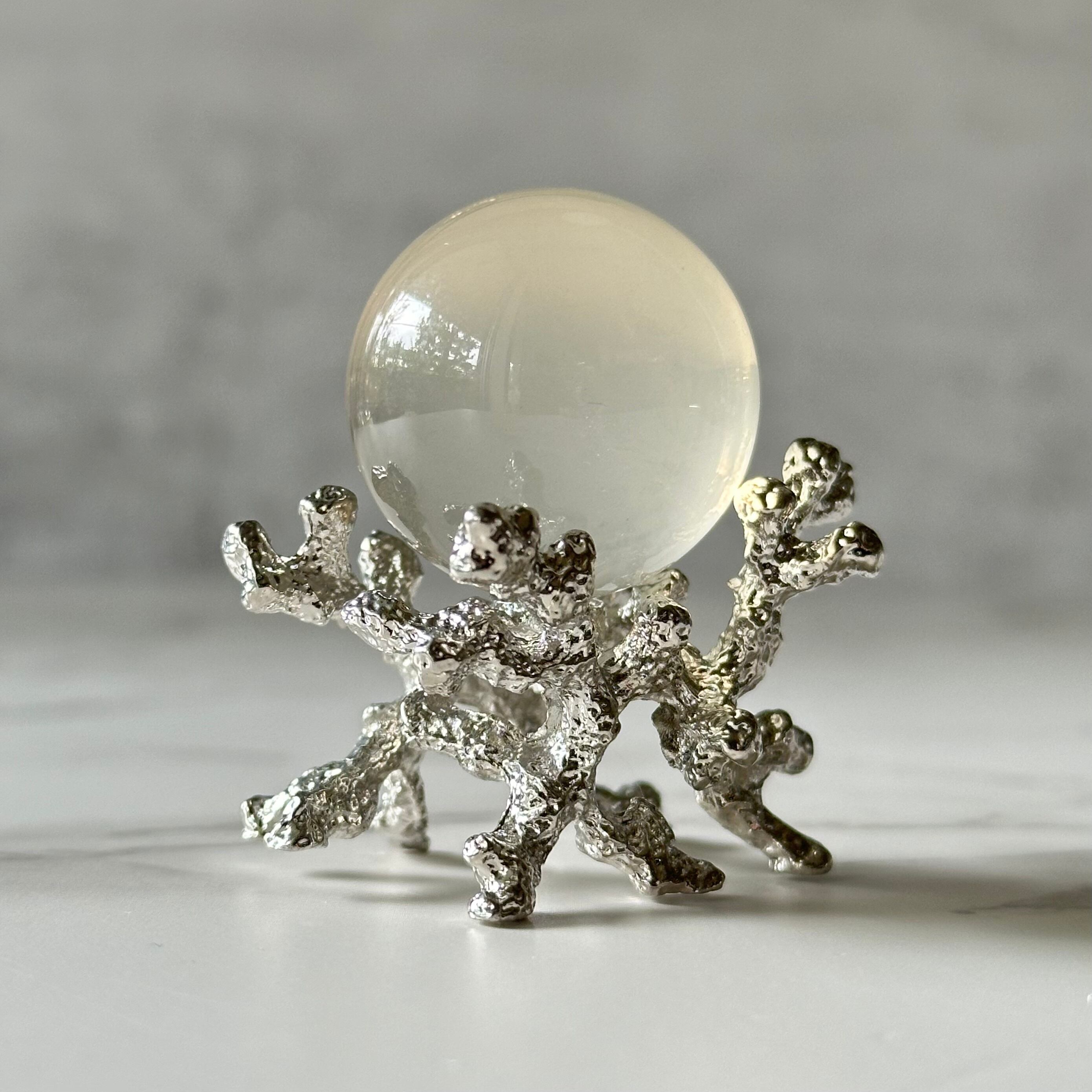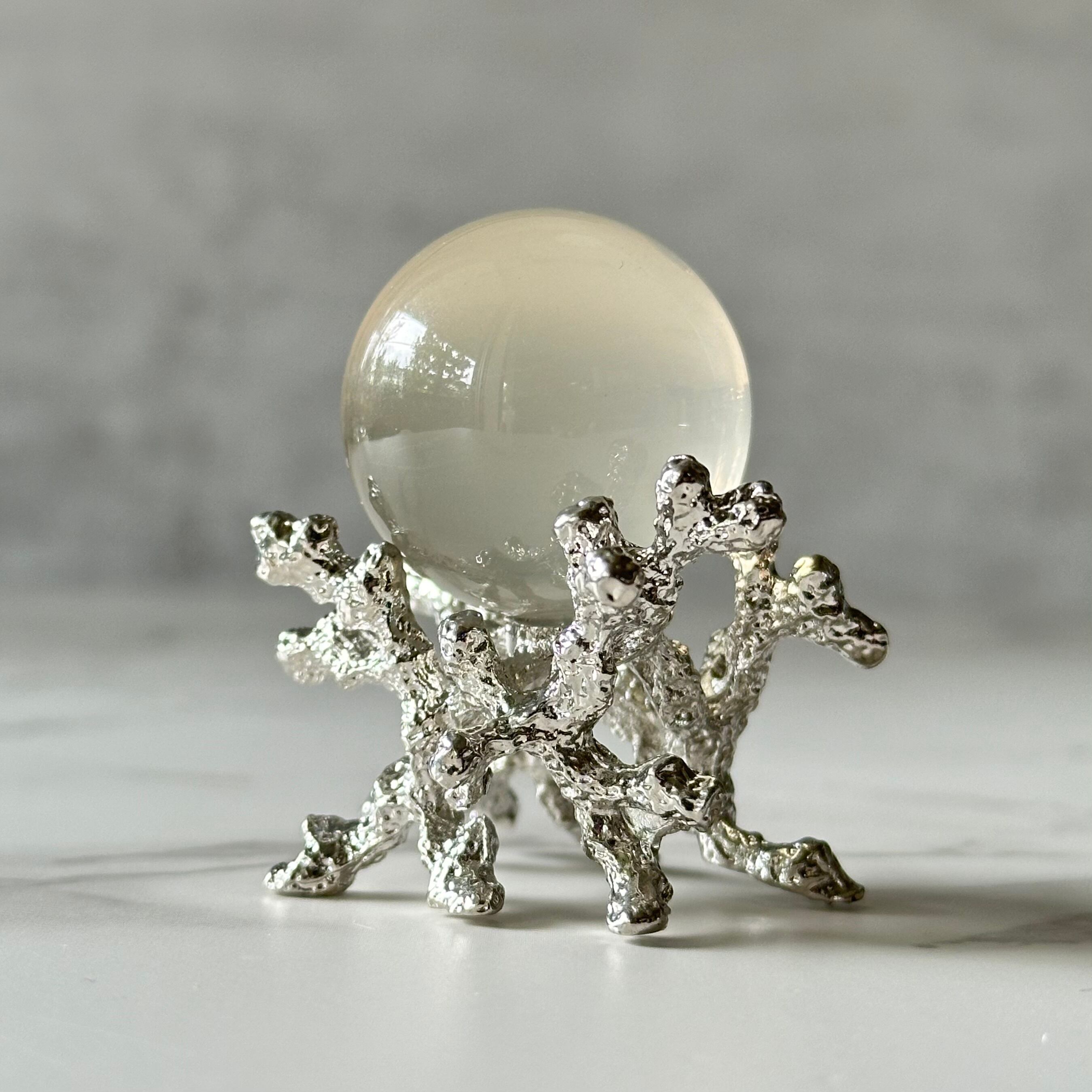 淡く柔らかい色合いのミルキーイエローのスフィアと珊瑚の台座のセットです。