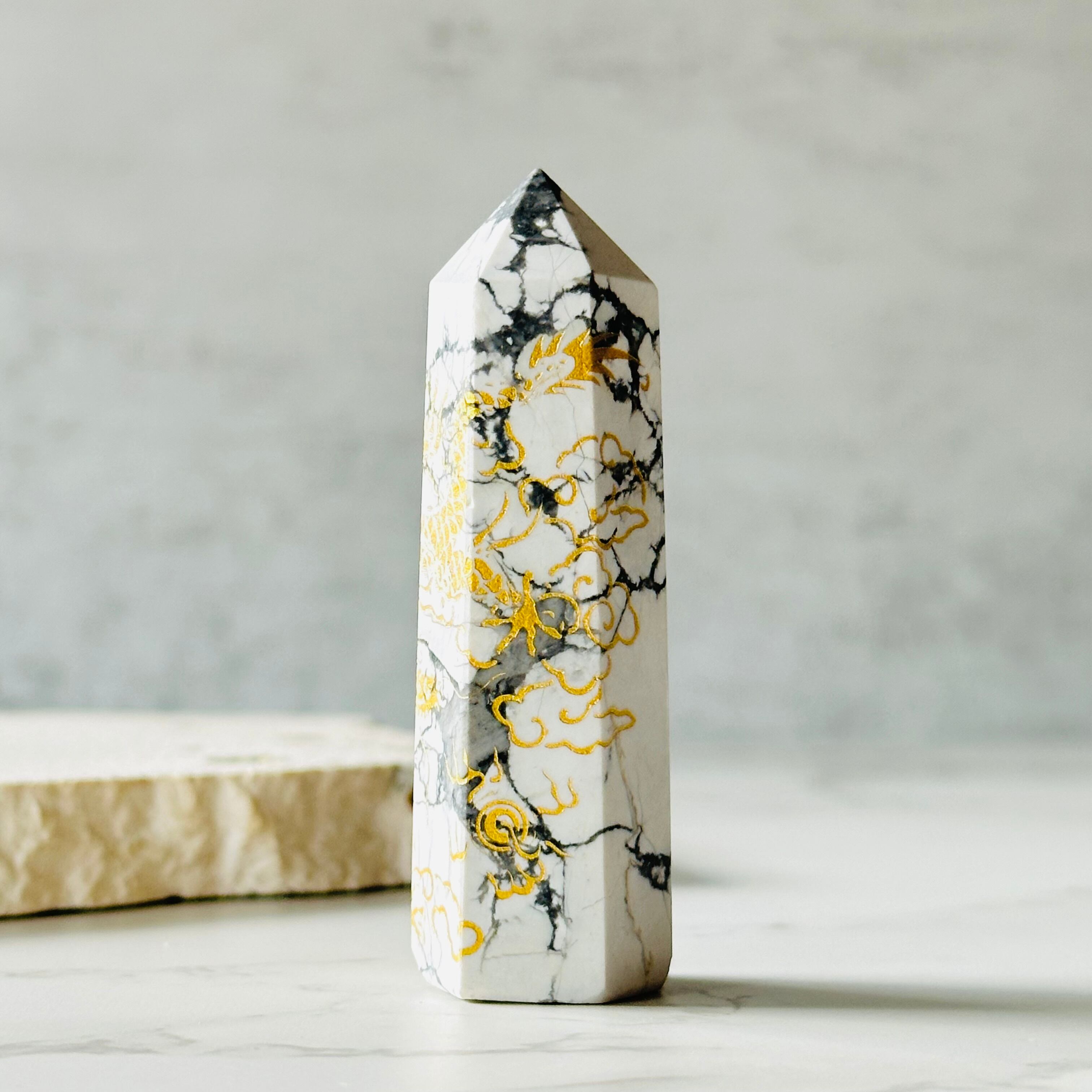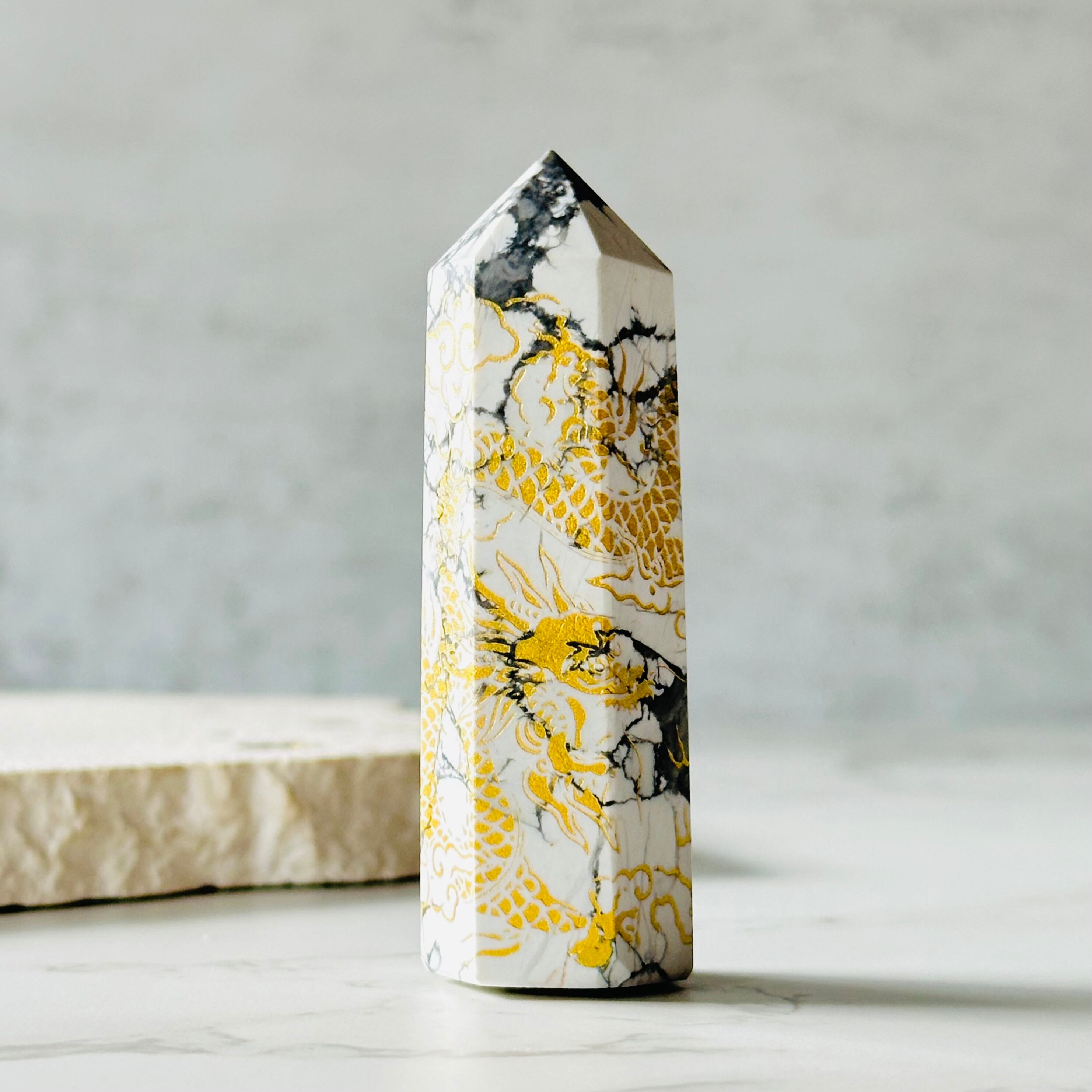 ハイライトに金の五爪龍の模様を刻んだタワーです。