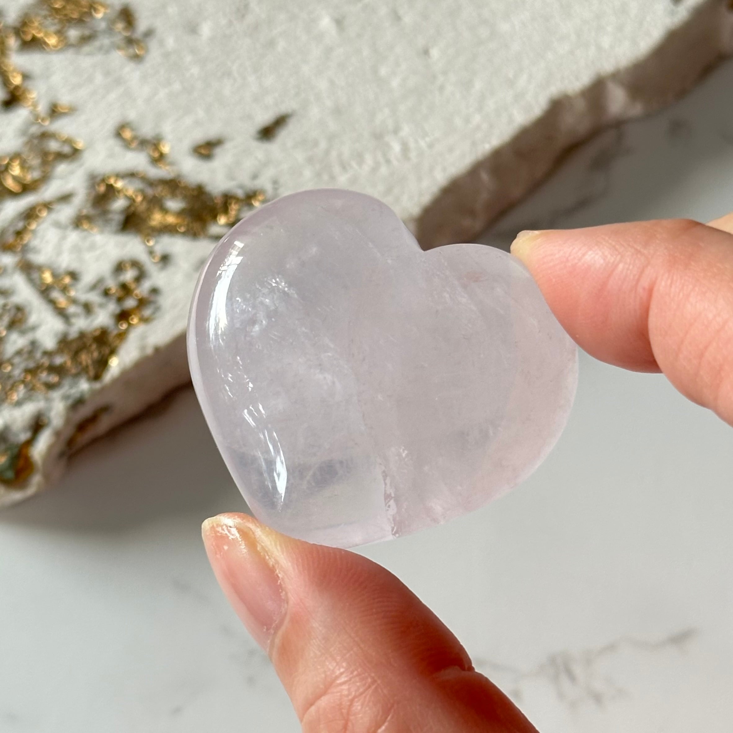 淡いラベンダーピンクのペリウィンクルローズクォーツのパームストーンです。