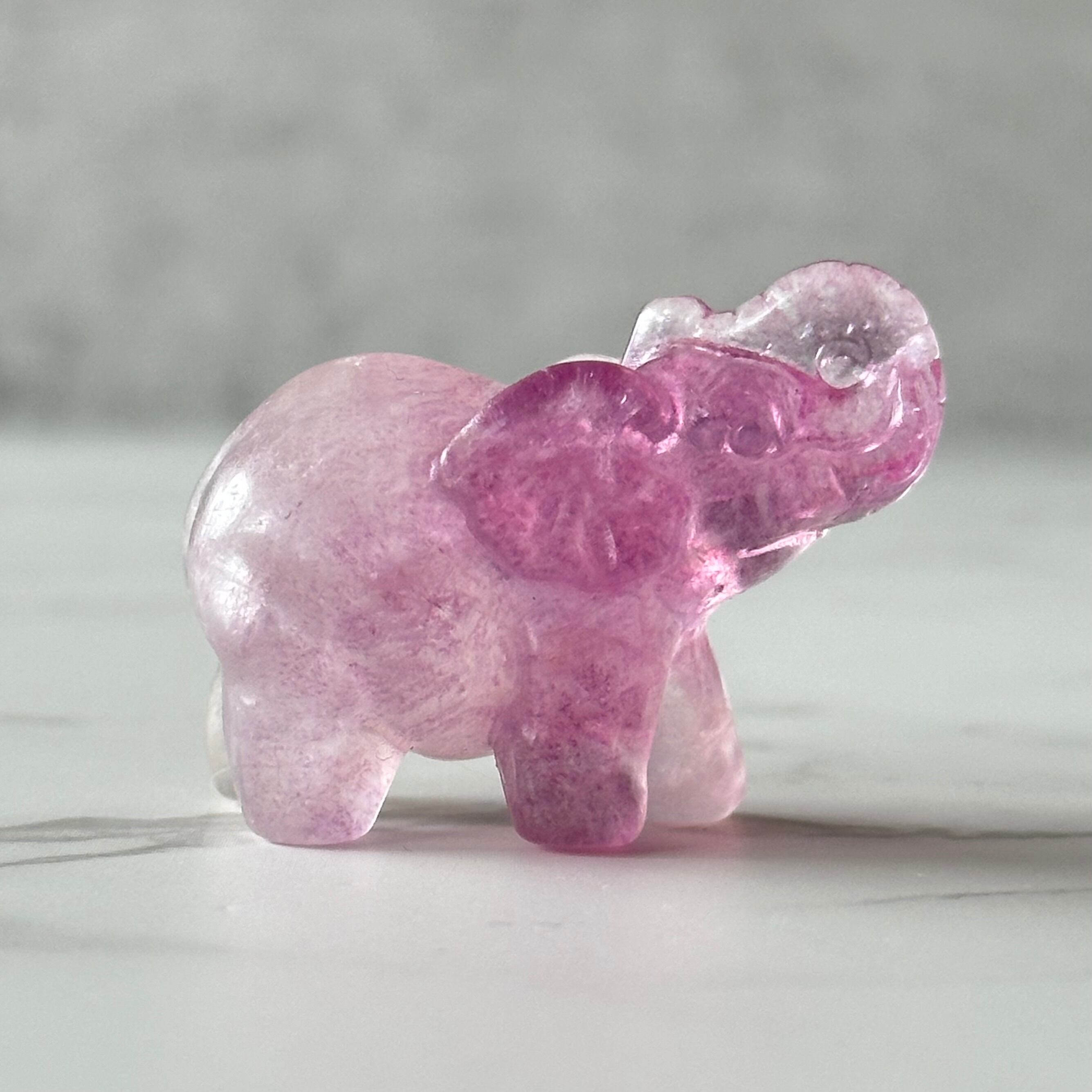 可愛いピンク色のフローライトが綺麗な象さんです。