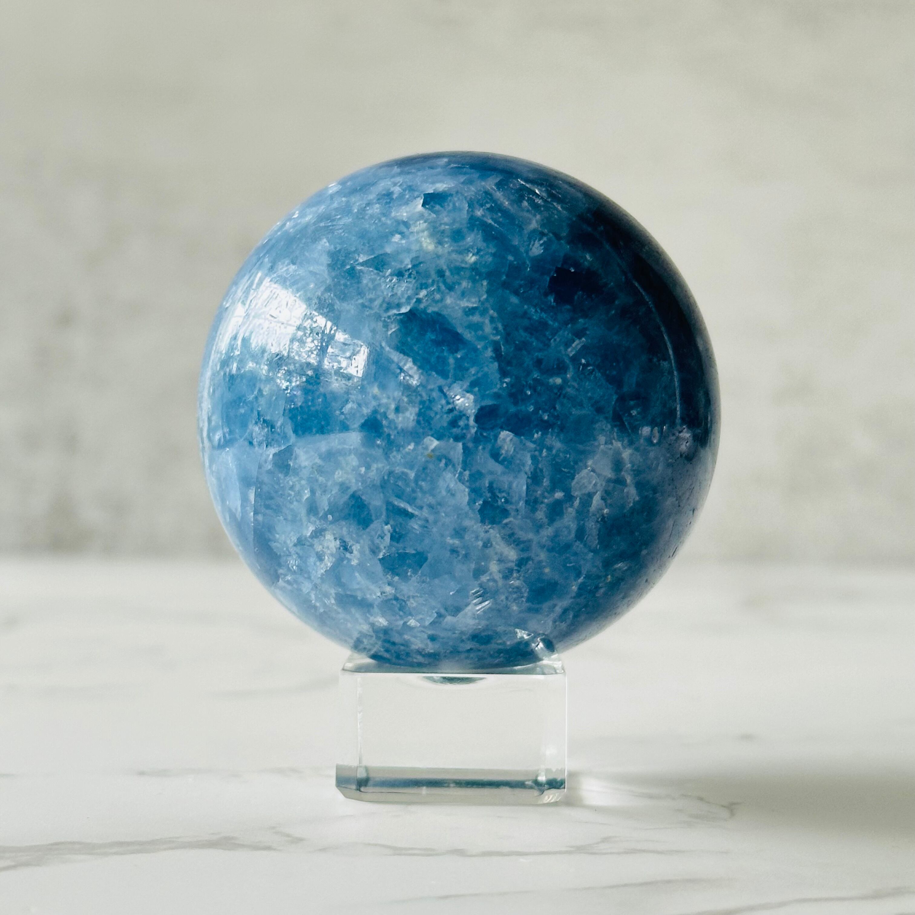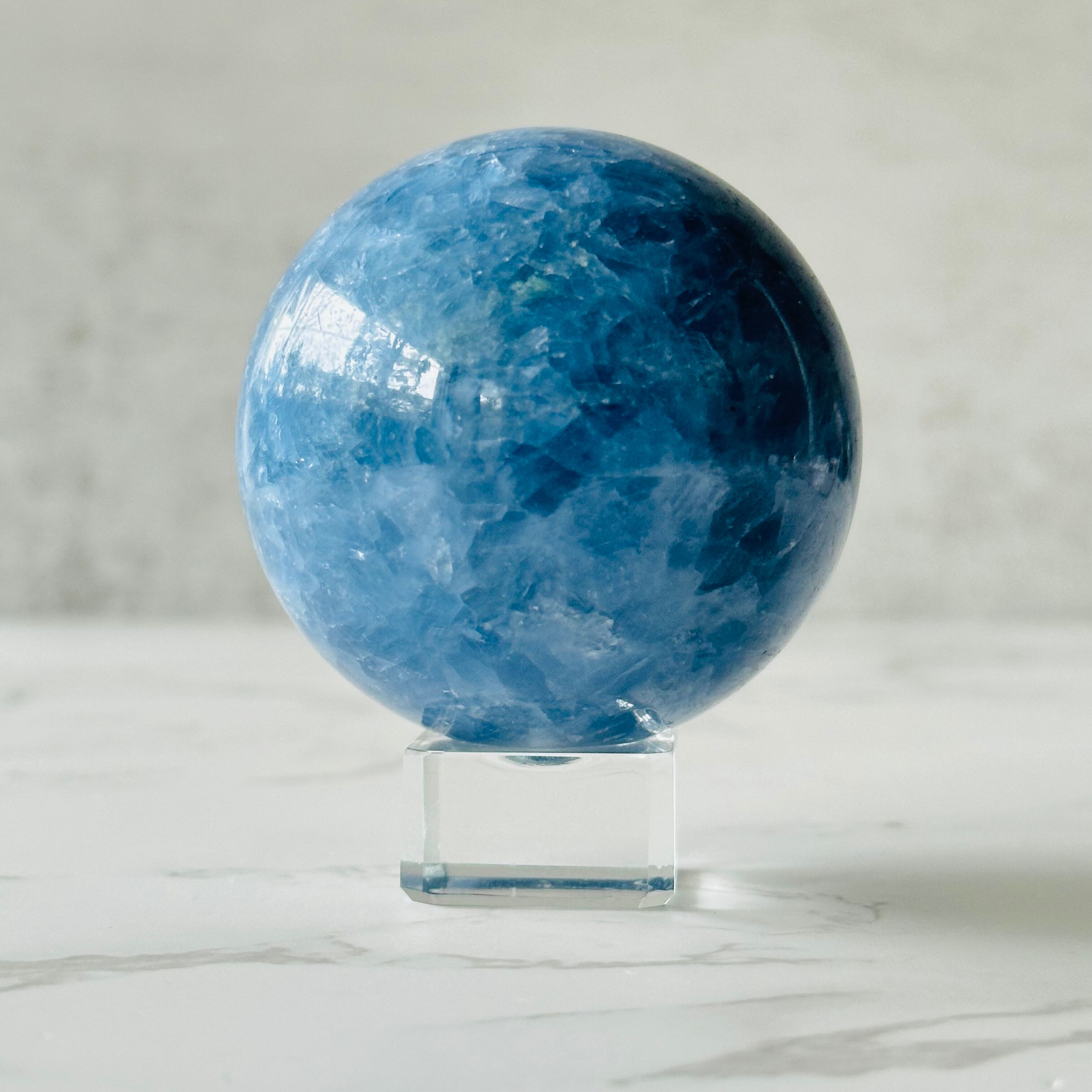 澄み切った冬空のような美しいブルーのセレスタイト。くるくる回すと結晶がキラキラと輝きます。ヒーリング効果の高いセレスタイトは持ち主の心や居場所となる空間を清らかに整えてくれることでしょう。