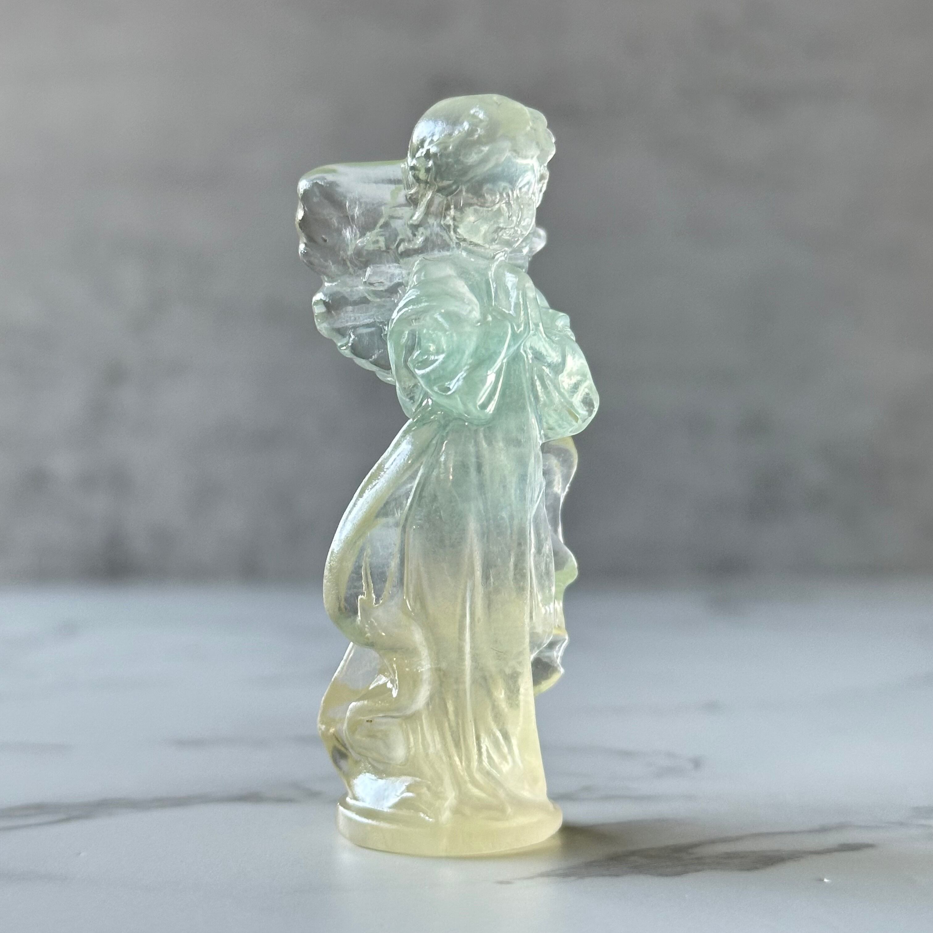 繊細で可憐な印象のフローライトエンジェル。透明感たっぷりのフローライトがとても綺麗です。