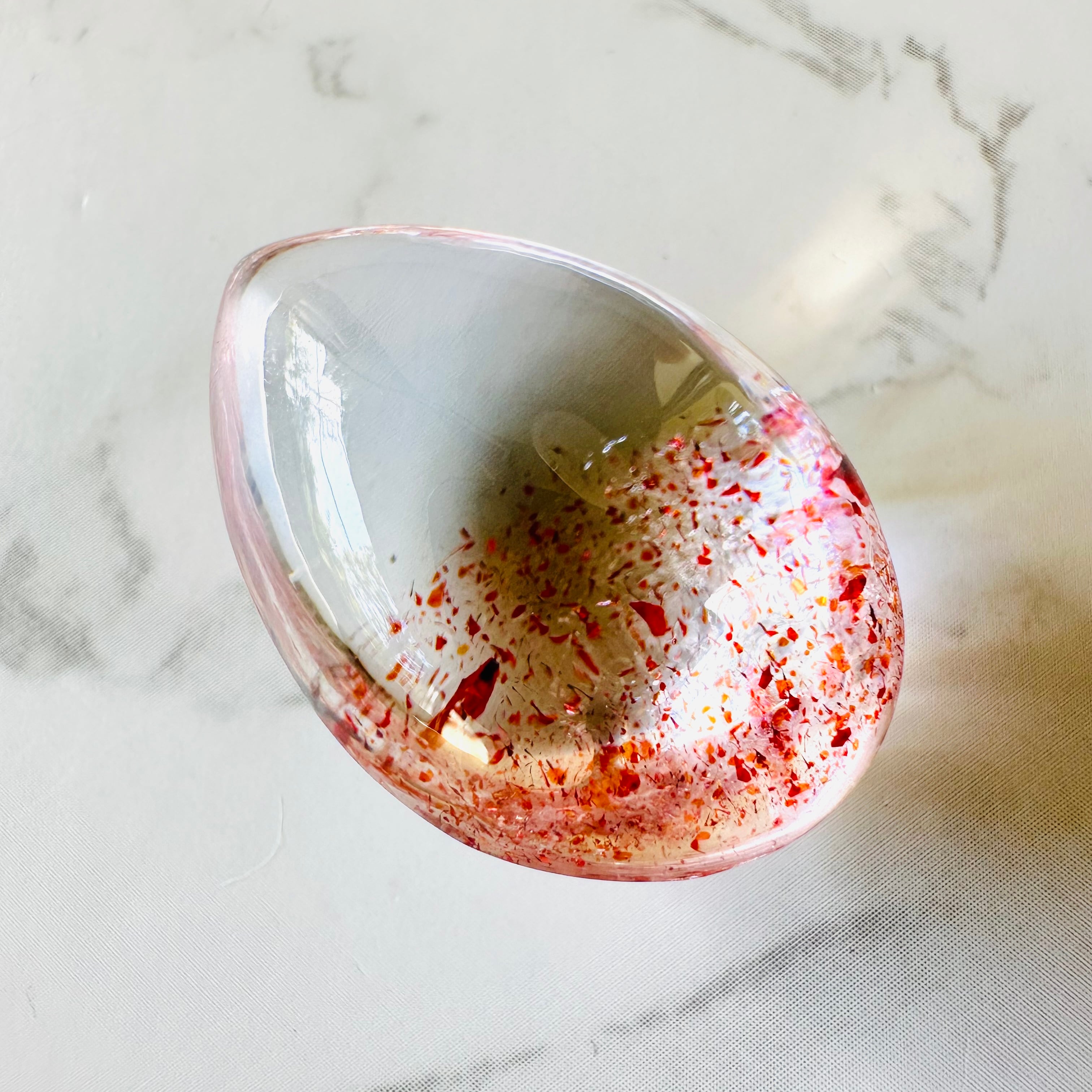 苺のように鮮やかな赤い粒が煌めくストロベリークォーツ。和名は「苺水晶(いちごすいしょう)」と言います。水晶に内包される微細なインクルージョンが赤やピンクに輝きます。