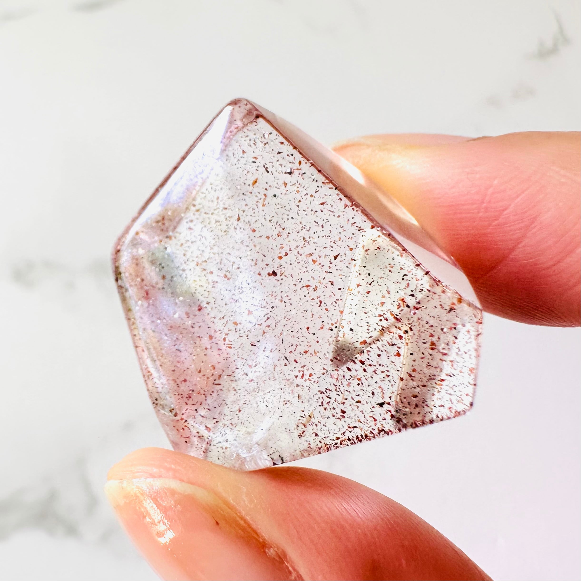 苺のように鮮やかな赤い粒が煌めくストロベリークォーツ。和名は「苺水晶(いちごすいしょう)」と言います。水晶に内包される微細なインクルージョンが赤やピンクに輝きます。