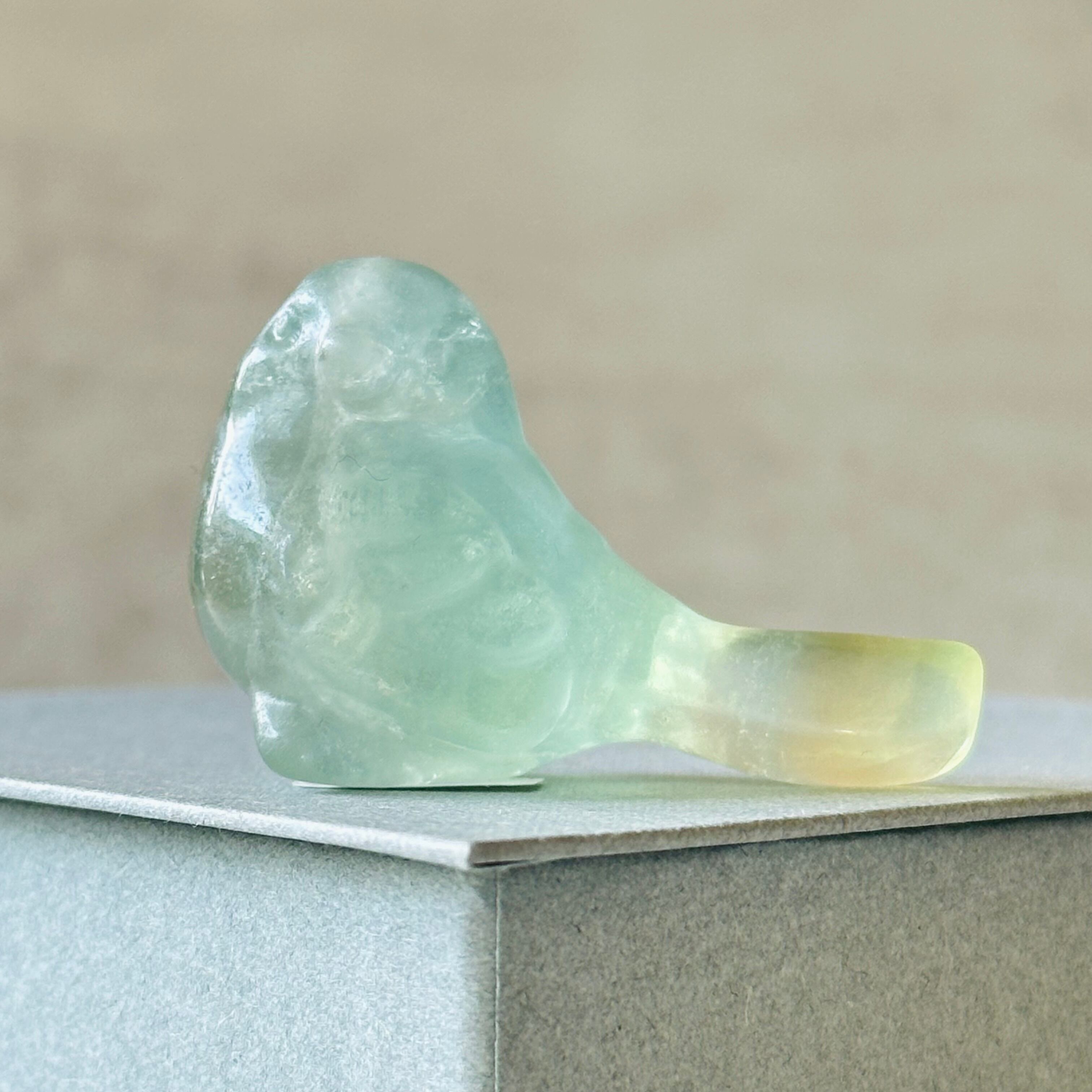 コロンとした形が可愛らしいフローライトの小鳥さんです。