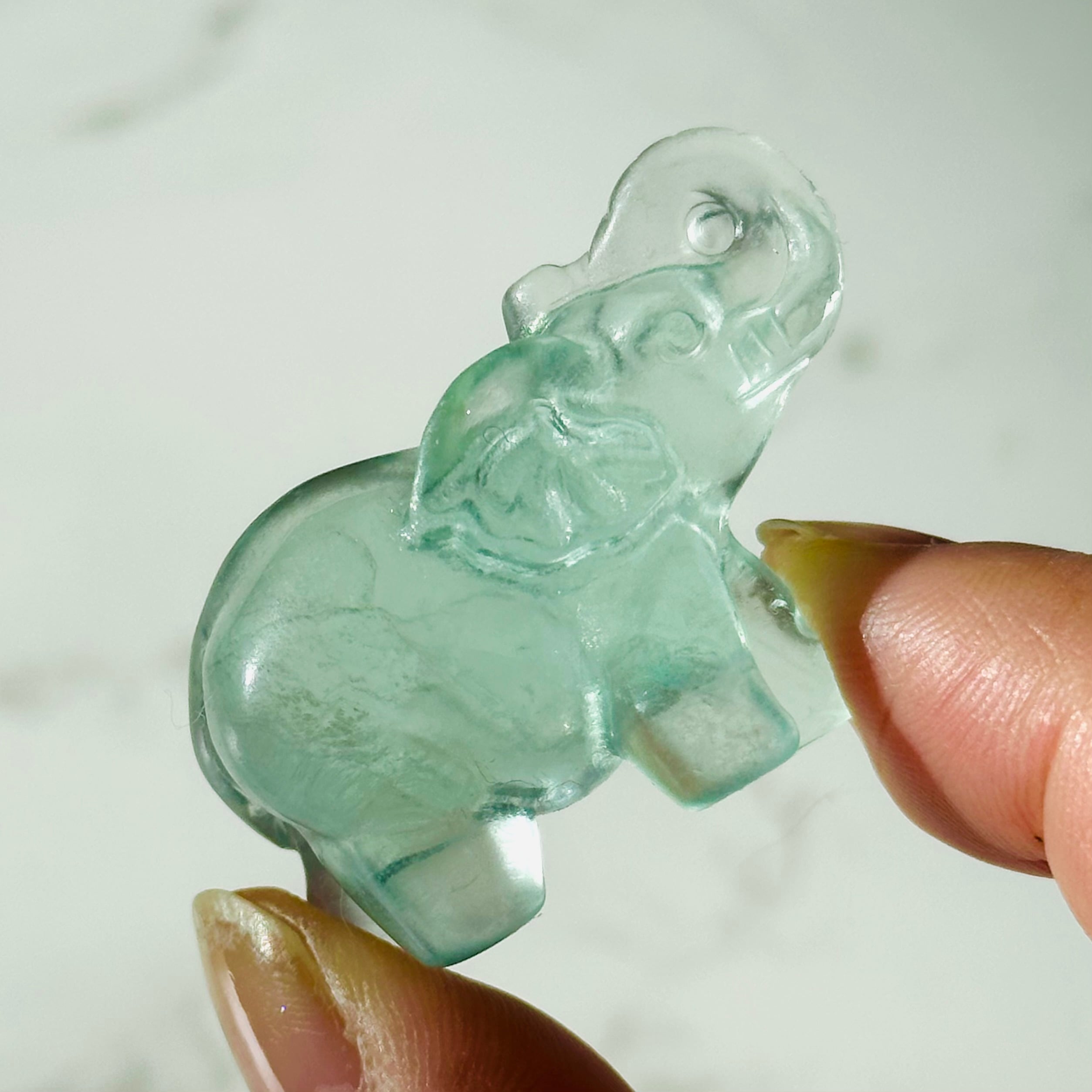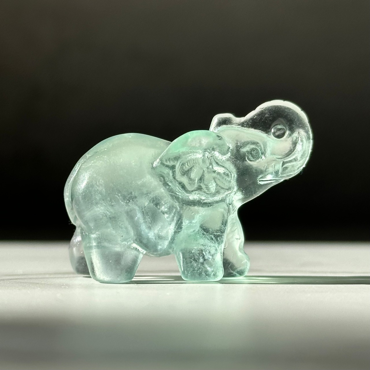 透明感たっぷりのフローライトが綺麗な象さんです。