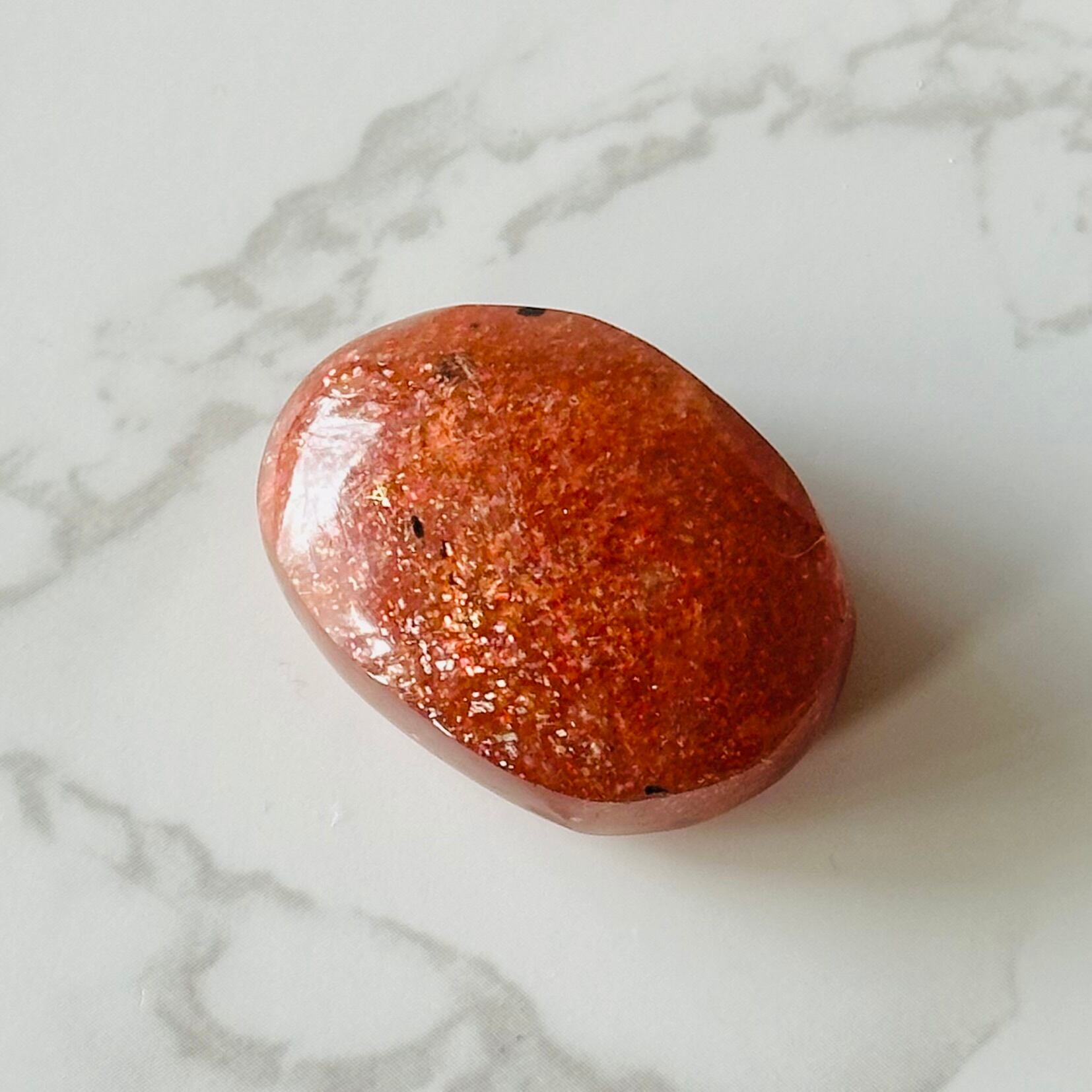 キラキラ虹色に輝くサンストーンのパームストーンです。無数の細かいラメが虹色に煌めき、シルバーホワイトのシラーが上品な光を放ちます。あたたかな太陽のパワーが明日を生きる力を与えてくれます。