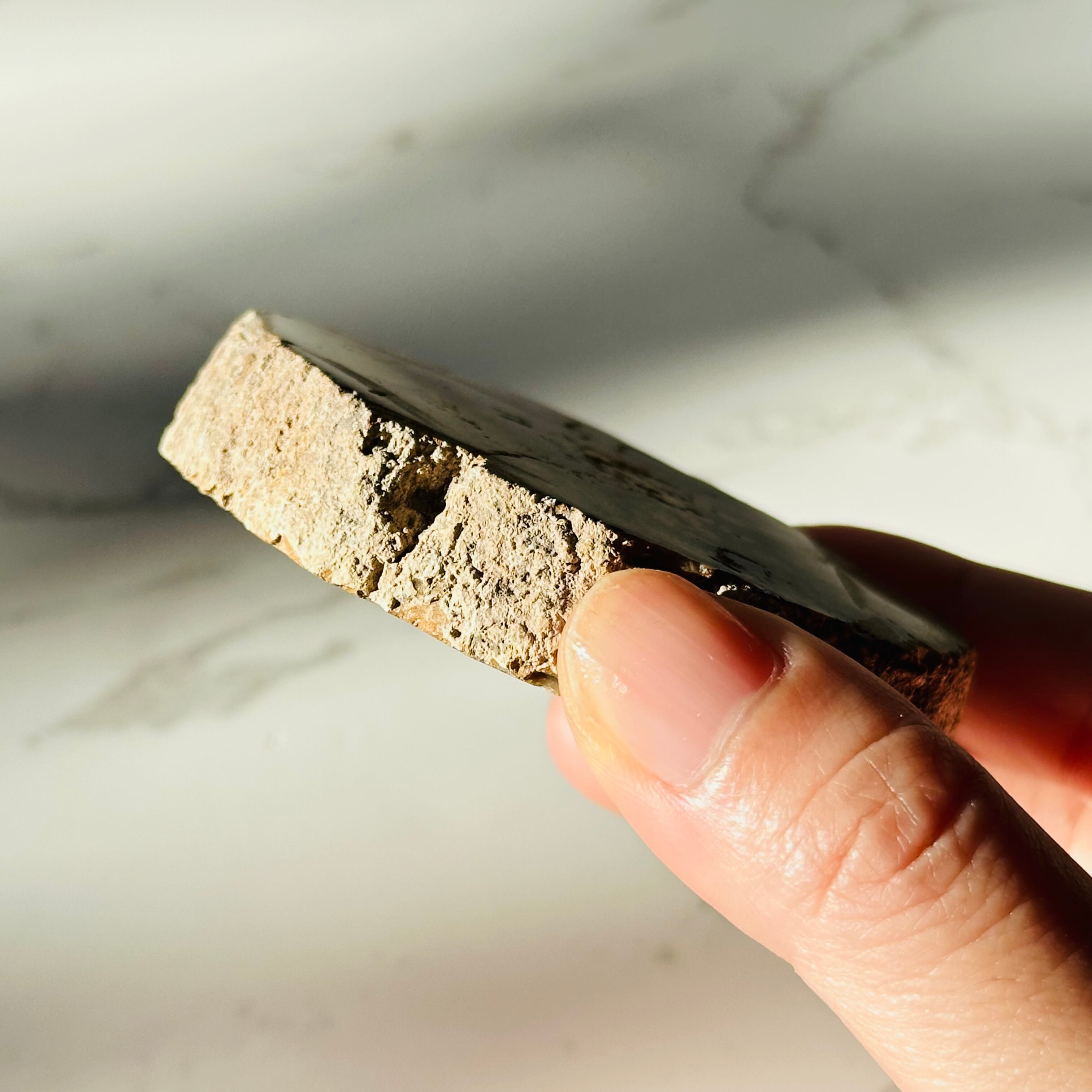 ペトリファイドウッドは太古の植物が化石化したもので、地中に埋もれた樹木に珪酸が浸透して、何億年もの時を経て化石にへと変化したものです。もともとは樹木ですが、化石化しているために木のように軽いわけではなく、重さがあり硬い質感です。