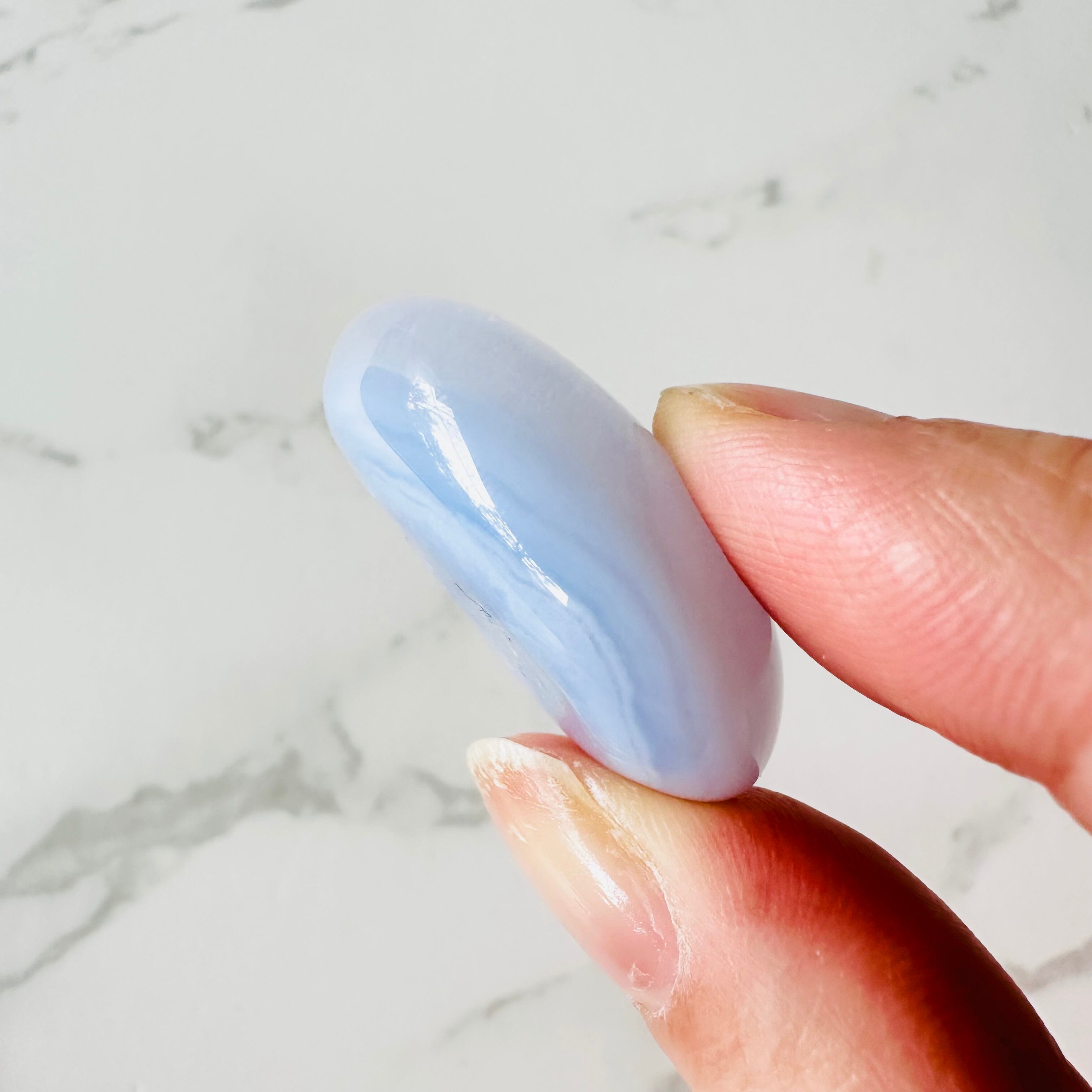 上品なサックスブルーのブルーレースアゲートのタンブルです。