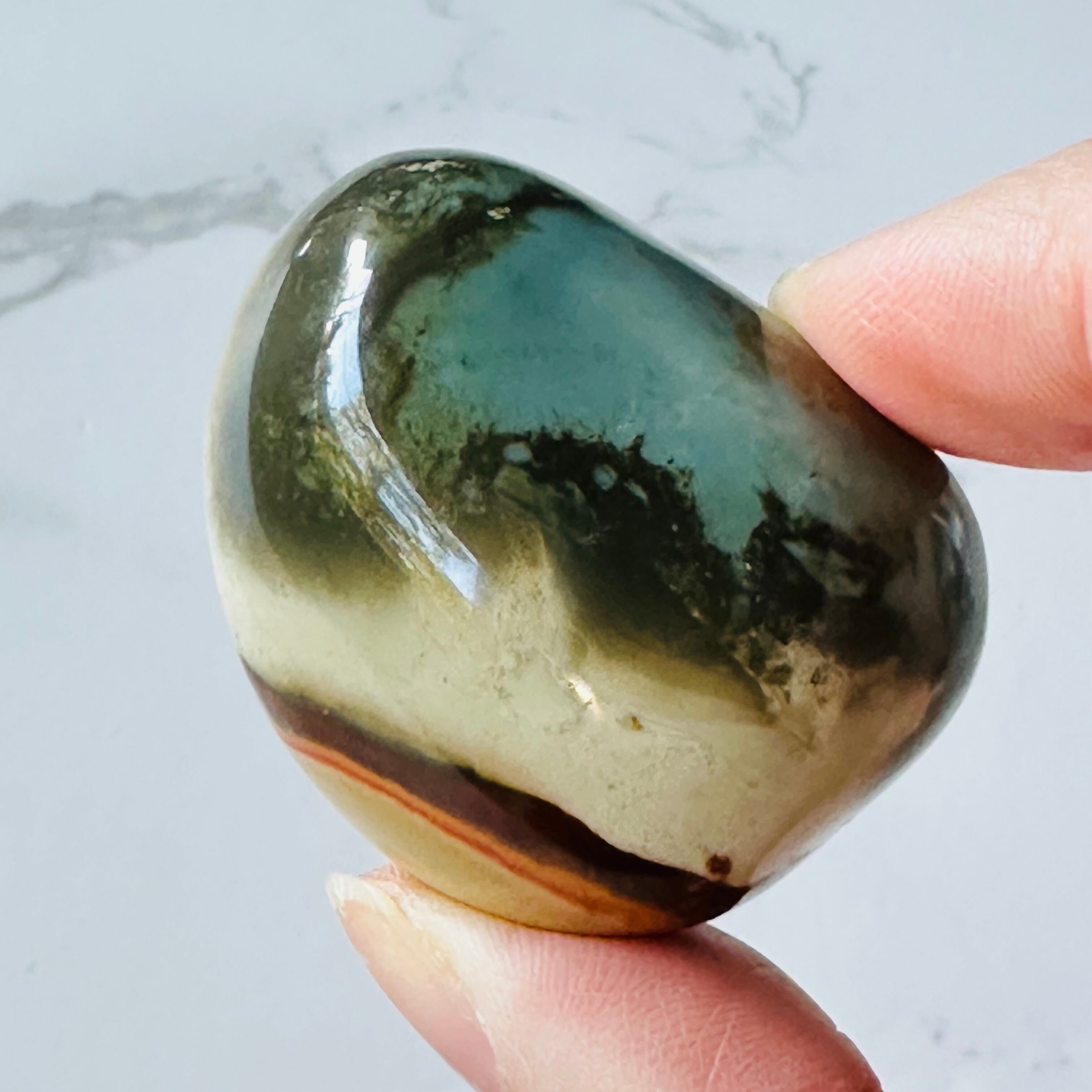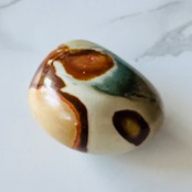 自然のアートな模様が魅力的なポリクロームジャスパーのパームです。滑らかで手にぎゅっと握るとほっと安らぐ癒しと安心感を得ることができます。アースカラーと個性のあるパターンが魅力の天然石です。