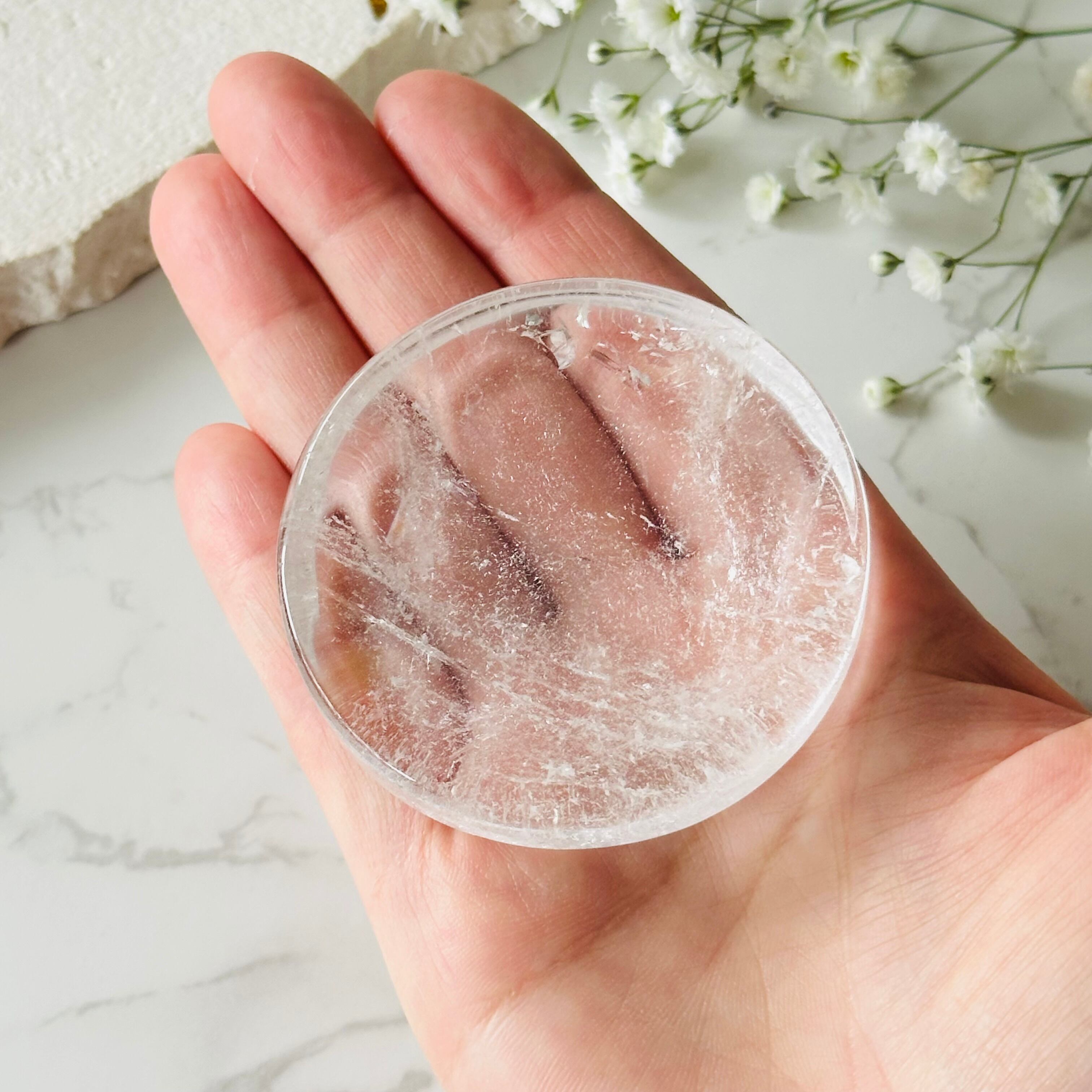 つるつると滑らかな水晶の表面が美しく、透き通った水晶に微細な内包物がキラキラして綺麗です。お気に入りのリングやタンブルなどを一晩置けば、寝ている間にマイナスのエネルギーを浄化して次の朝にはクリアな状態に戻してくれます。