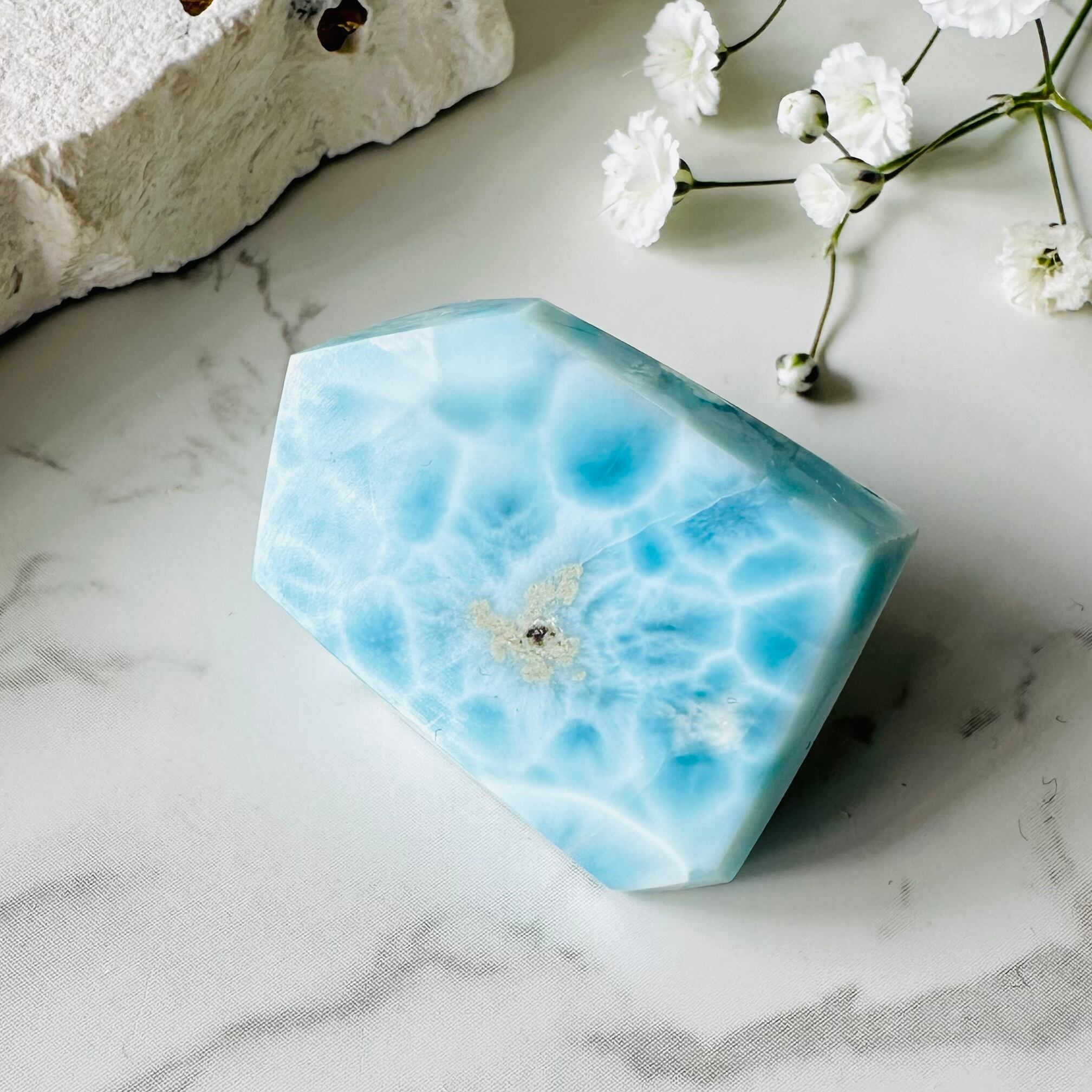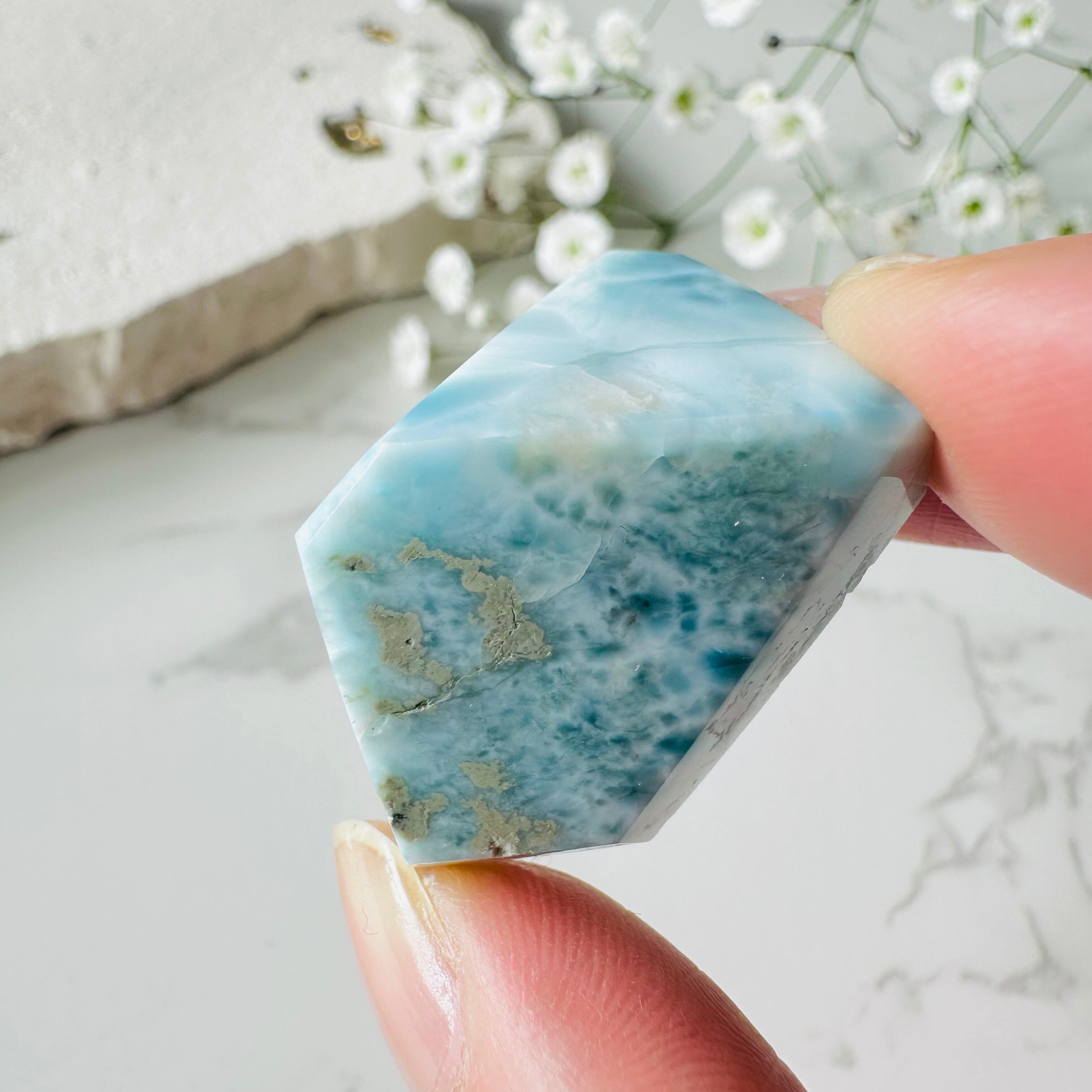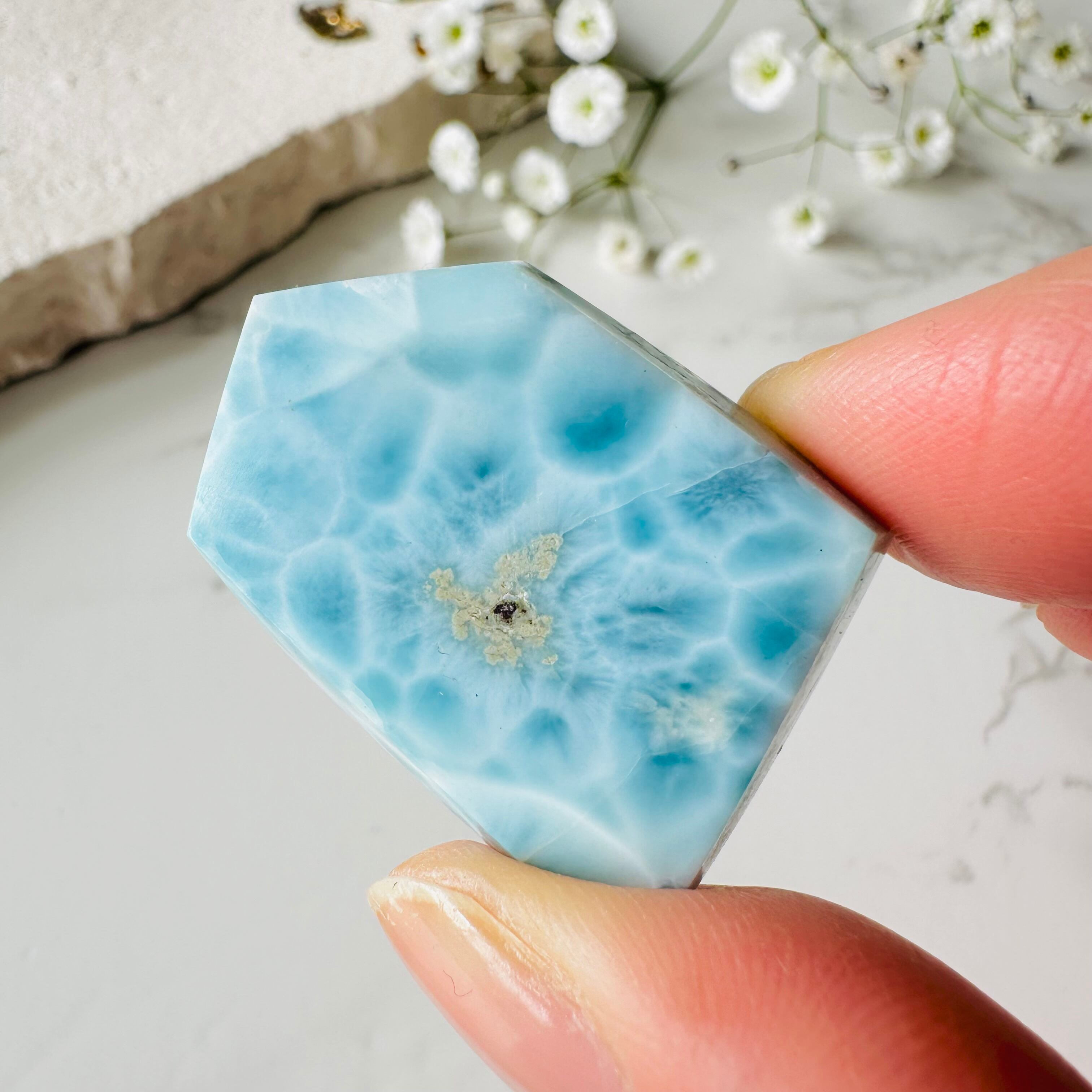 ラリマーはカリブ海に浮かぶ小さな島ドミニカ共和国から産出されます。カリブ海を思わせるような美しいブルーの模様が特徴で、見るものを優しく癒してくれます。愛と平和を象徴するパワートーンと言われ、世界三大ヒーリングストーンの一つとして有名で、癒しのパワーでストレスを解消して安らかな心へと導いてくれます。ラリマーの波動は、まるでカリブの美しい海に身を委ね、波に洗われているかのような浄化と癒しのエネルギーです。