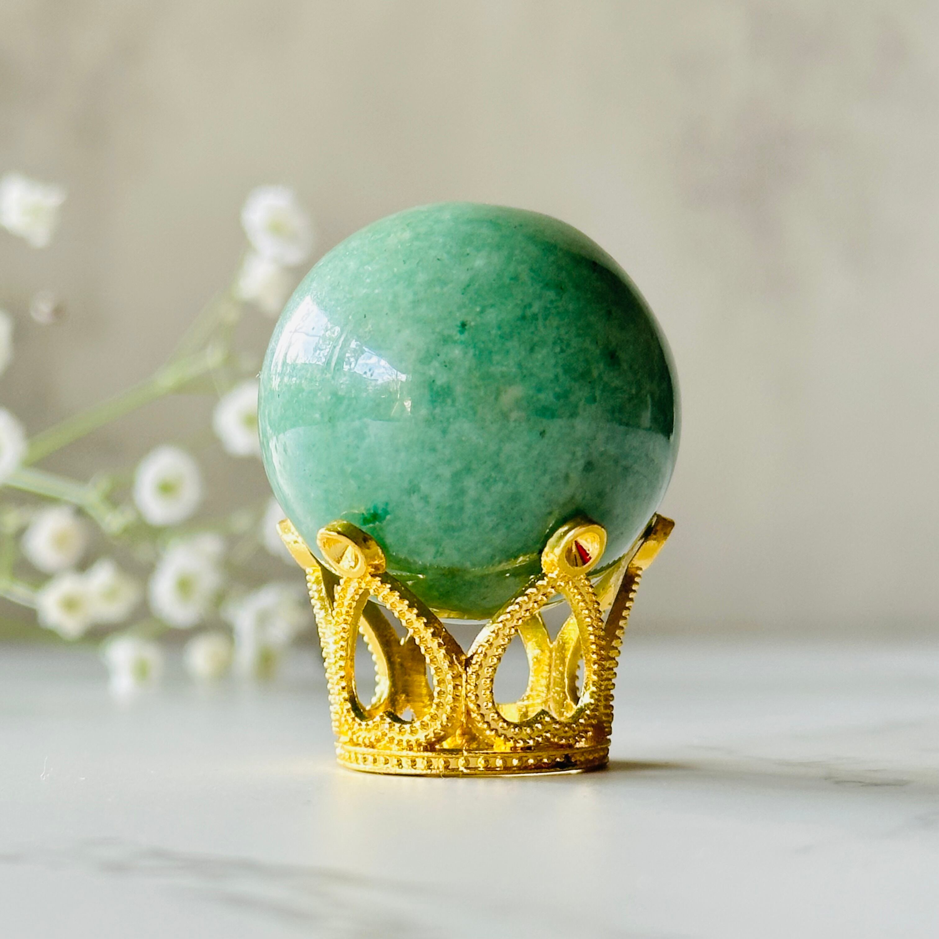 上品な優しい色合いのグリーンアベンチュリンスフィアです。